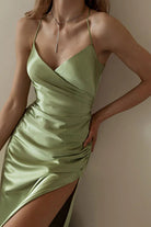 جيوفانا | فستان ميدي مشقوق - أسلوب خفيف وحمالات رقيقة