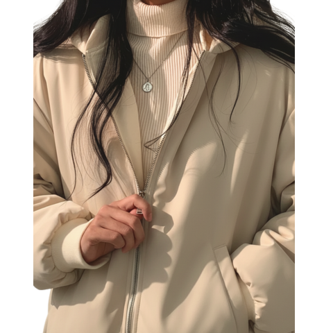 تتميز هذه السترة بتصميمها القابل للعكس، حيث تقدم جانباً رمادياً فاتحاً بمظهر سلس وجانباً عاجياً بمظهر أكثر حجماً. كل جانب يقدم مظهراً مختلفاً: أحدهما لأسلوب بسيط، والآخر لمظهر أكثر احتواءً وملمساً. قصتها القصيرة، وغطاء الرأس المدمج، وحجمها الوفير يجعلها قطعة مثالية للأيام الباردة حيث ترغب في تغيير مظهرك دون تغيير الملابس.