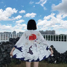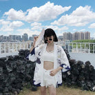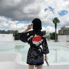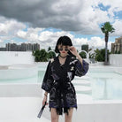 Tato dámská kimono bunda je zdobena rafinovaným potiskem zobrazujícím japonské ptáky, symboly harmonie a elegance. Její volný a lehký střih zajišťuje dokonalé pohodlí, ať už pro neformální vzhled nebo pro formálnější outfit.