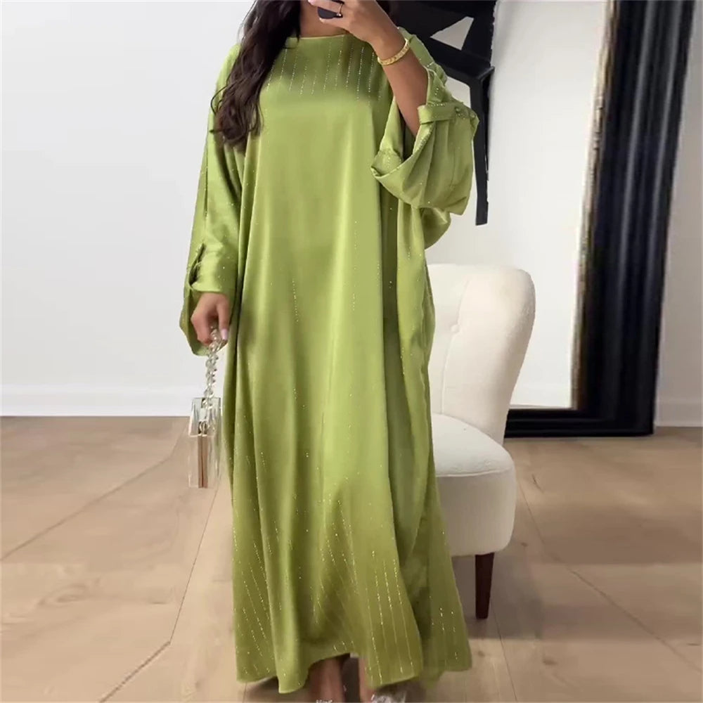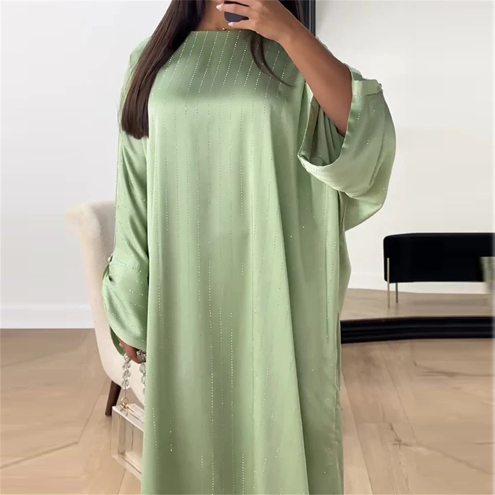 Αυτή η βραδινή αμπάγια συνδυάζει μια ρευστή γραμμή με έναν κομψό ριγέ σχεδιασμό. Η φαρδιά σιλουέτα της εξασφαλίζει απόλυτη άνεση, ενώ οι διακριτικές λεπτομέρειές της αναδεικνύουν την εμφάνισή σας με διακριτικότητα.