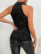 Charline | Sleeveless Tailored Collar Top – Glitter Effect and Chic Style