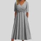 This short-sleeve wrap dress offers a flattering silhouette. Its elegant design suits various occasions. Available in several colors to match your style.