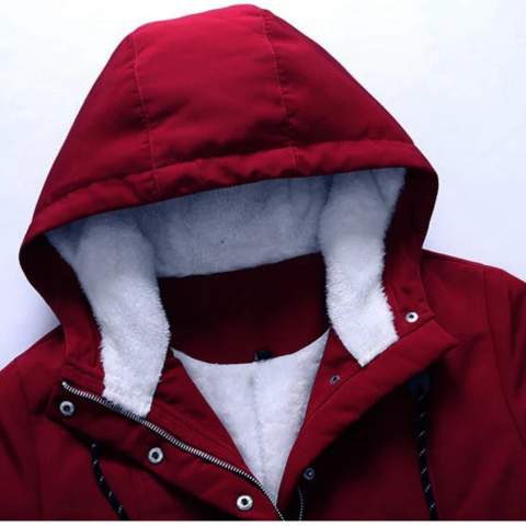 Sania | Long Women's Jacket — Hooded with Drawstring and Buttoned Pockets