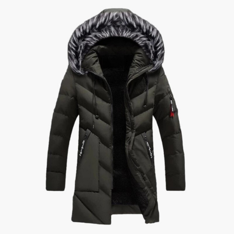 Ez a férfi téli parka kivételes meleget és modern dizájnt ötvöz. Hosszú szabása és műszőrme díszítésű kapucnija optimális védelmet nyújt a szél és a hideg ellen. Tökéletes a fagyos napok legyőzésére, miközben megőrzi a városi és ápolt stílust.