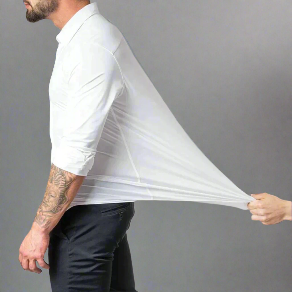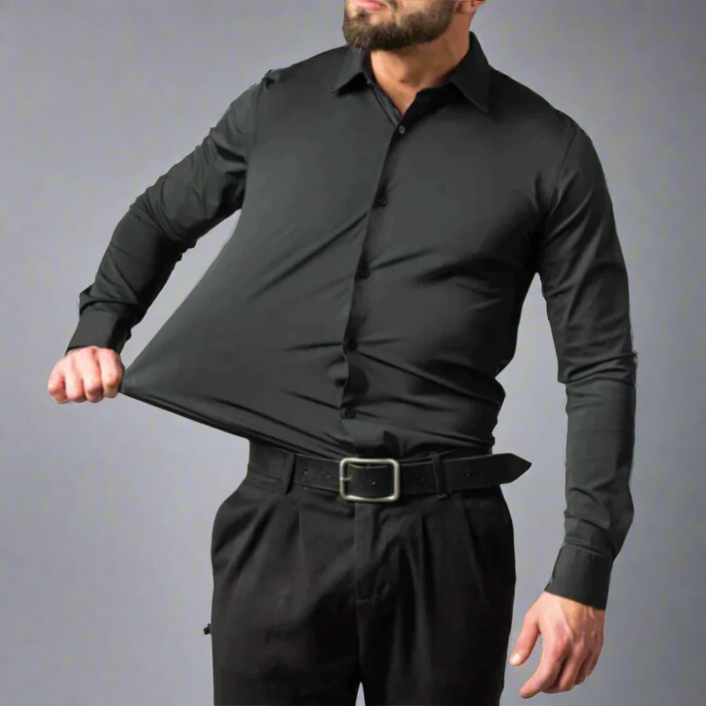 Ez az ing optimális mozgásszabadságot kínál rugalmas anyagának köszönhetően. Az illeszkedő szabás elegáns sziluettet biztosít minden alkalomra. Könnyen karbantartható, megőrzi hibátlan megjelenését mosásról mosásra.