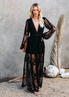 この黒のロングドレスは、繊細な刺繍と流れるようなカットでボヘミアンの精神を体現しています。長袖は快適さと軽やかさをもたらし、シルエットはさりげなく引き立てられています。すべての場面に対応できるエレガントで多用途なアイテムです。