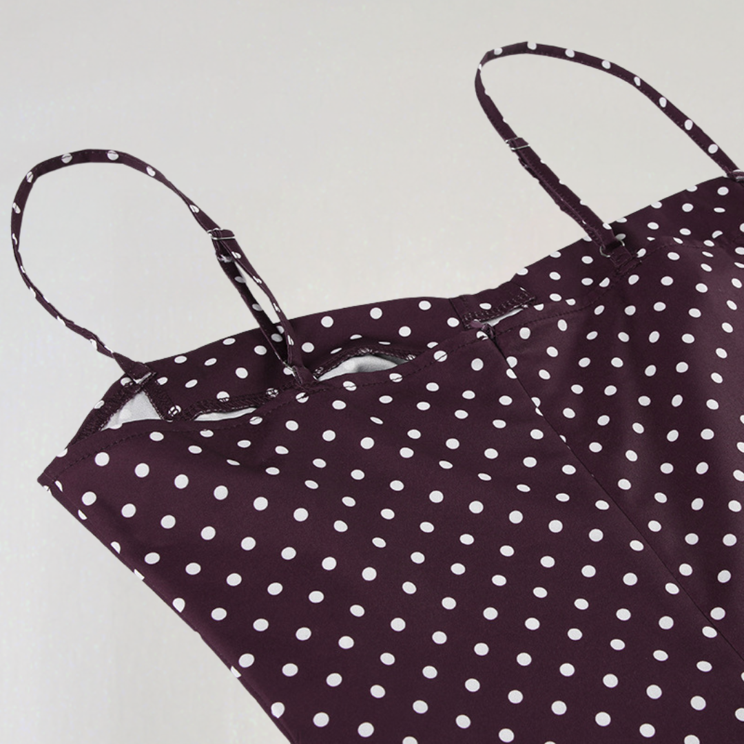 ベアトリス | ドット柄のショートドレス – ヴィンテージシックなスタイルのためのチョコレート模様