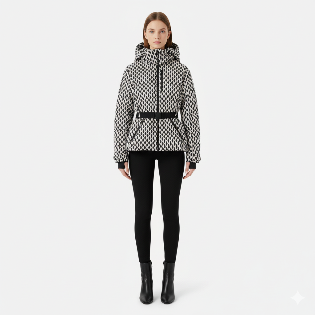 Farah | Vinterjakke med belte for kvinner — Grafisk eleganse & moderne varme