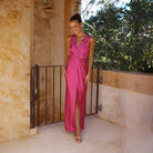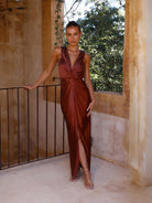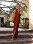 Deze splitjurk benadrukt de silhouette dankzij de elegante split en de vloeiende snit. Ontworpen voor grote gelegenheden, combineert het verfijnde stijl met bewegingsvrijheid. Het tijdloze ontwerp zorgt voor een chique uitstraling in elke situatie.