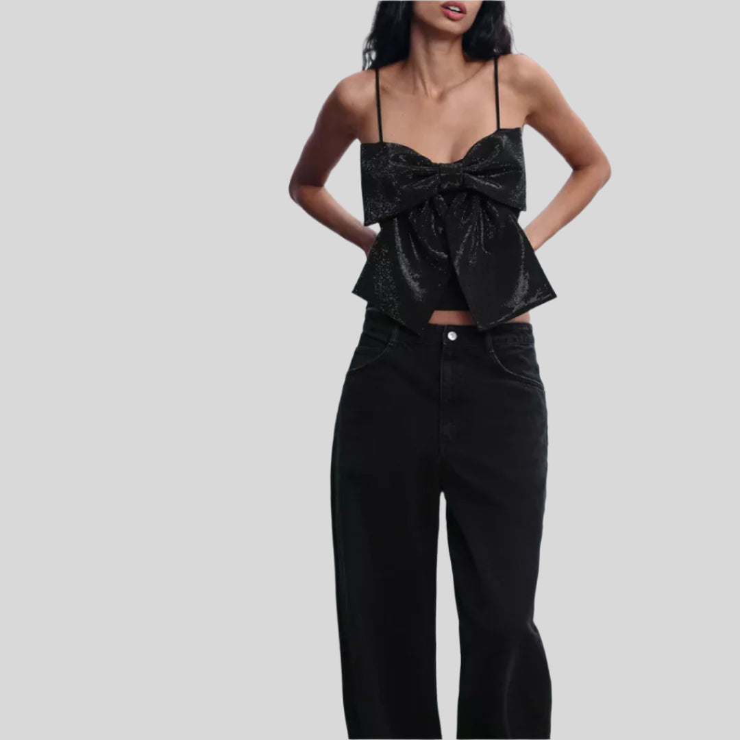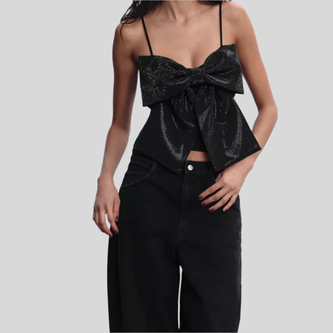 Ta elegancka bluzka ma błyszczący design wzbogacony o charakterystyczny kokardę. Idealna na specjalne okazje lub aby dodać wyrafinowania do codziennego stroju. Dostępna w różnych rozmiarach, aby pasować do każdej sylwetki.
