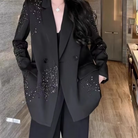 Esta chaqueta negra encarna la elegancia moderna con un toque de brillo delicado. Sus detalles brillantes añaden una nota refinada a tu apariencia, sin nunca exagerar. Perfecta para una noche chic o un look profesional distinguido, combina sobriedad y esplendor.