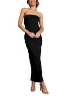 Este vestido largo de satén sin tirantes dibuja una silueta elegante y femenina. Fluido y ligero, es ideal para las noches de verano, bodas o ocasiones especiales. Su caída sedosa aporta un toque de refinamiento mientras asegura un confort óptimo. Disponible en varios colores para adaptarse a todos los estilos.