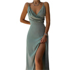 Táto večerná šaty s rozparkom spája sofistikovanosť a štýl. Jej voľný strih zvýrazňuje siluetu, zatiaľ čo rozparok pridáva odvážny nádych. Ideálne na špeciálne príležitosti, zaručuje pozoruhodnú prítomnosť.